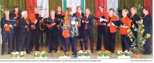 Bermissima Frauenchor Bermbach nahm am diesjährigen Kzeisleistungssingen mit den neu einstudierten Vorträgen „Waldecho" von Friedrich Silcher in Bearbeitung von Helmut Bogenhardt und „Hebe deine Augen auf" von FelixMendelsohn Bartholdy teil.